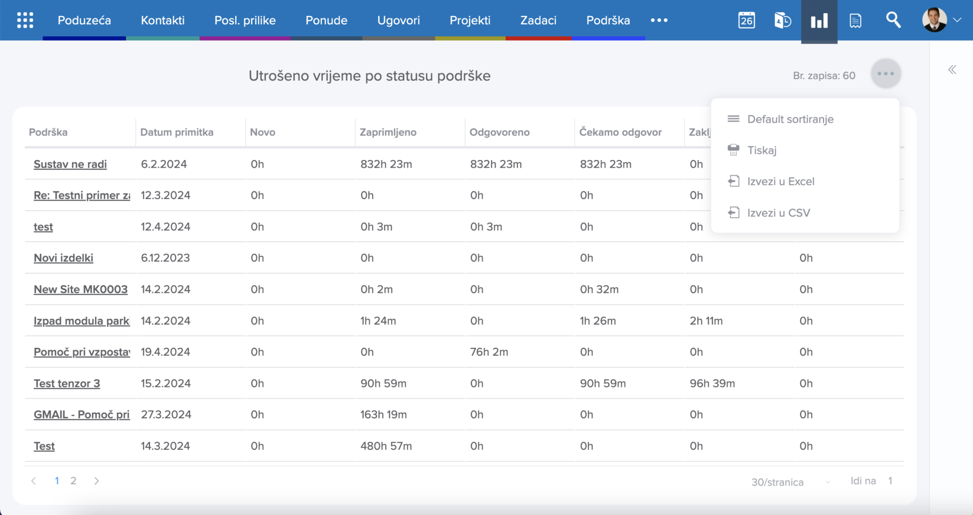 U help desk modulu svi zaprimljeni zahtjevi se prikupljaju na jednom mjestu. Njima možete upravljati i spremati ih izravno iz sustava. Imajte sve vezano uz zahtjev na jednom mjestu – od dolaznih i odlaznih poruka do komentara. U sustavu je također omogućena interna komunikacija između zaposlenika.