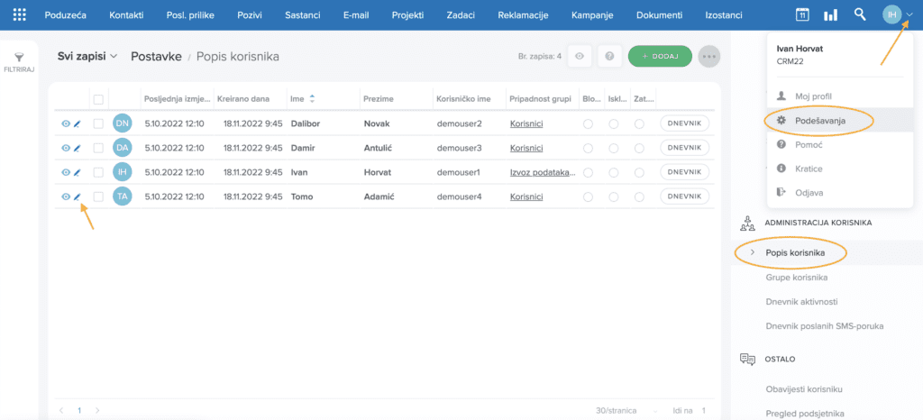 Kao administrator aplikacije, možete jednostavno dodati ili ukloniti korisnika iz korisničke grupe. Klikom na “administraciju korisnika”, možete odabrati “popis korisnika” gdje imate popis svih korisnika unutar pojedine aplikacije.