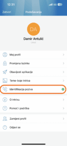Provjerite aktivaciju aplikacije u postavkama Intrix aplikacije. Kliknite na “Postavke”, zatim na “ID pozivatelja”.