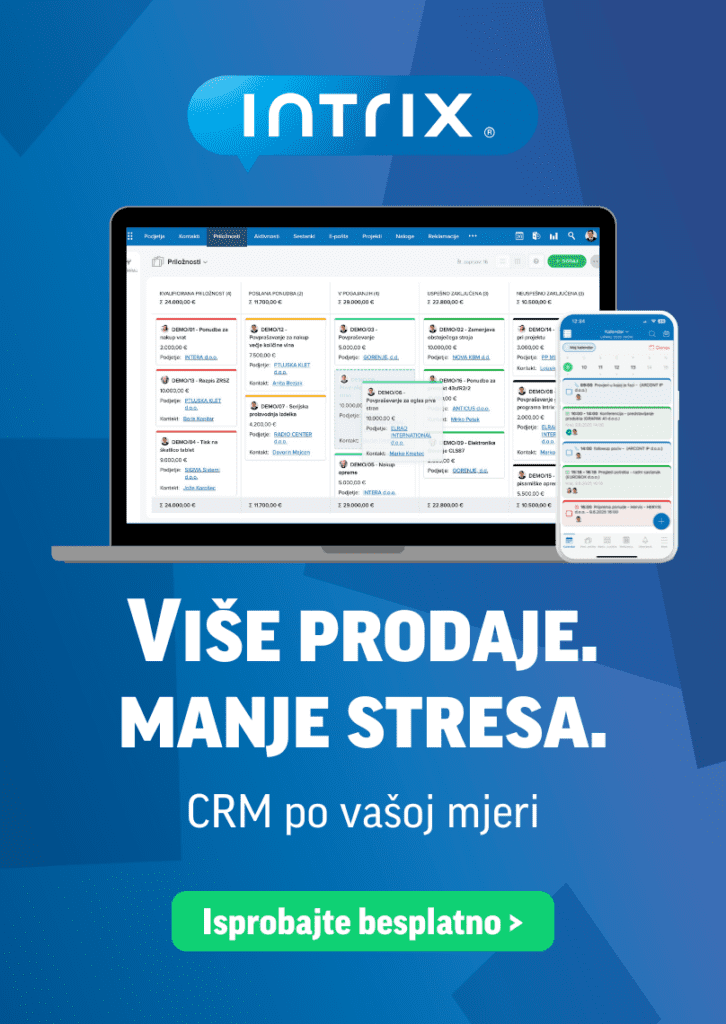 Podtaknuo bih vas da razmišljate što možete napraviti ove godine, koliko to mogu pratiti IT programi koji će vam omogučiti usporediti planirano – operativno (CRM) – realizirano. Jedino taj način razmišljanja vodi nas ka uspjehu. Ostalo je sve stihija i spontanost.